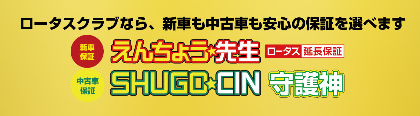 国産車「一般保証」(3年)及び輸入車のメーカー保証(3年)終了後に主に電装関係部品(91部品)を保証します。新車購入時、もしくは初回車検加入時に加入できます。『ロータス中古車保証』SHUGO☆CIN